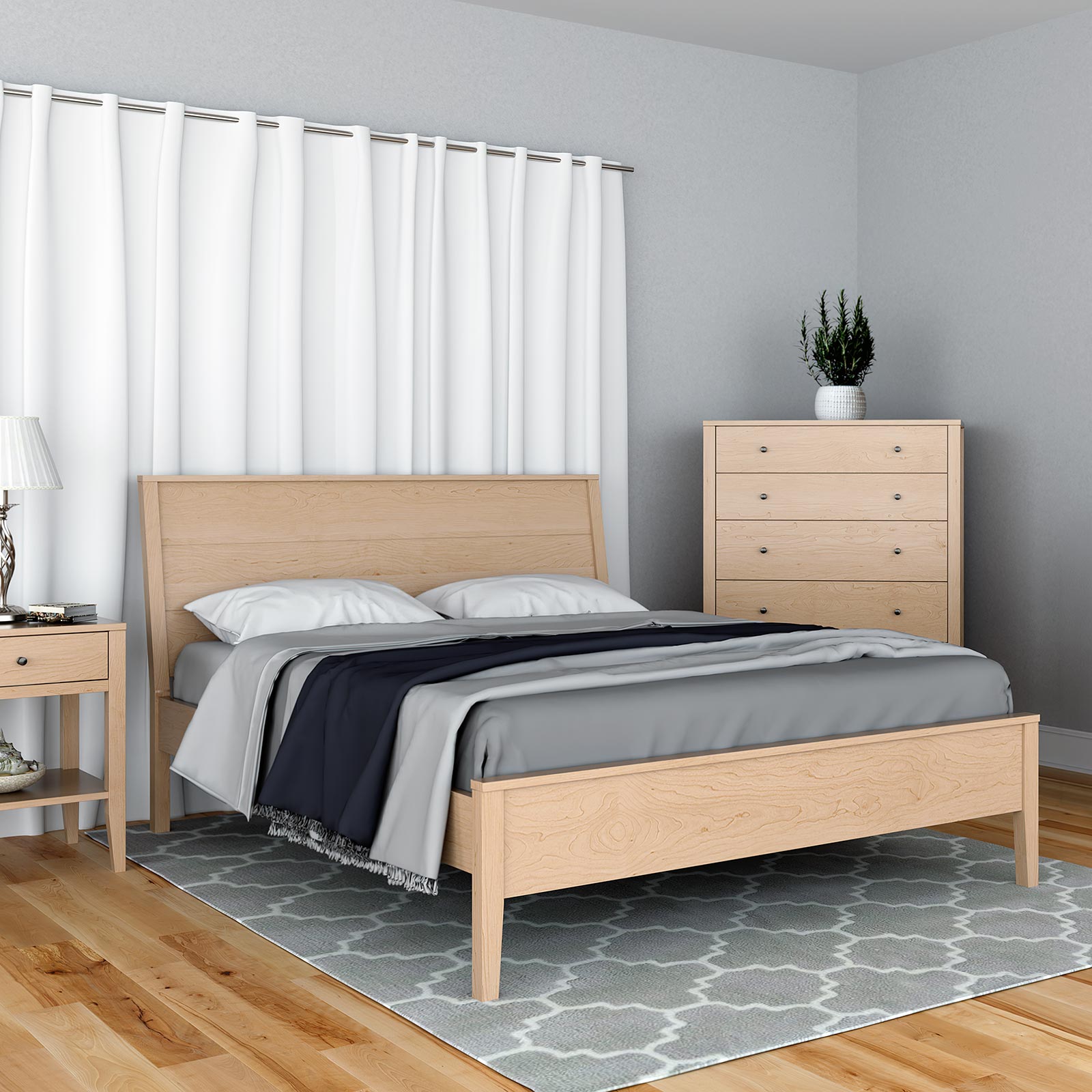 The Allen Collection is made from solid cherry, maple, oak, or birch in several finish options. The finish is formaldehyde-free for low chemical emissions.