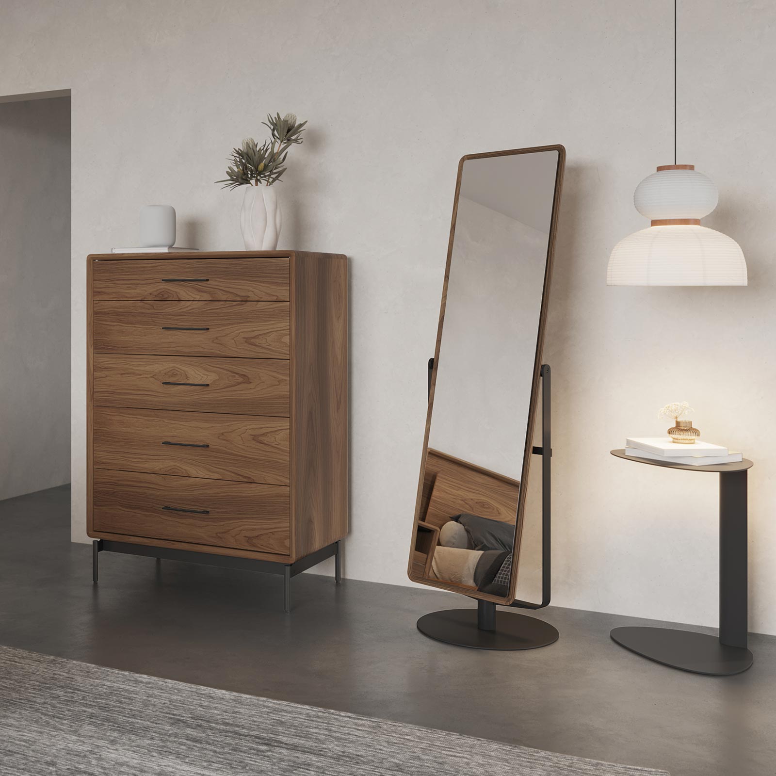 A chic and highly functional design, the Continuum Floor Mirror is a modern cheval mirror that includes a swivel base and smooth tilt function, allowing for effortless adjustment.