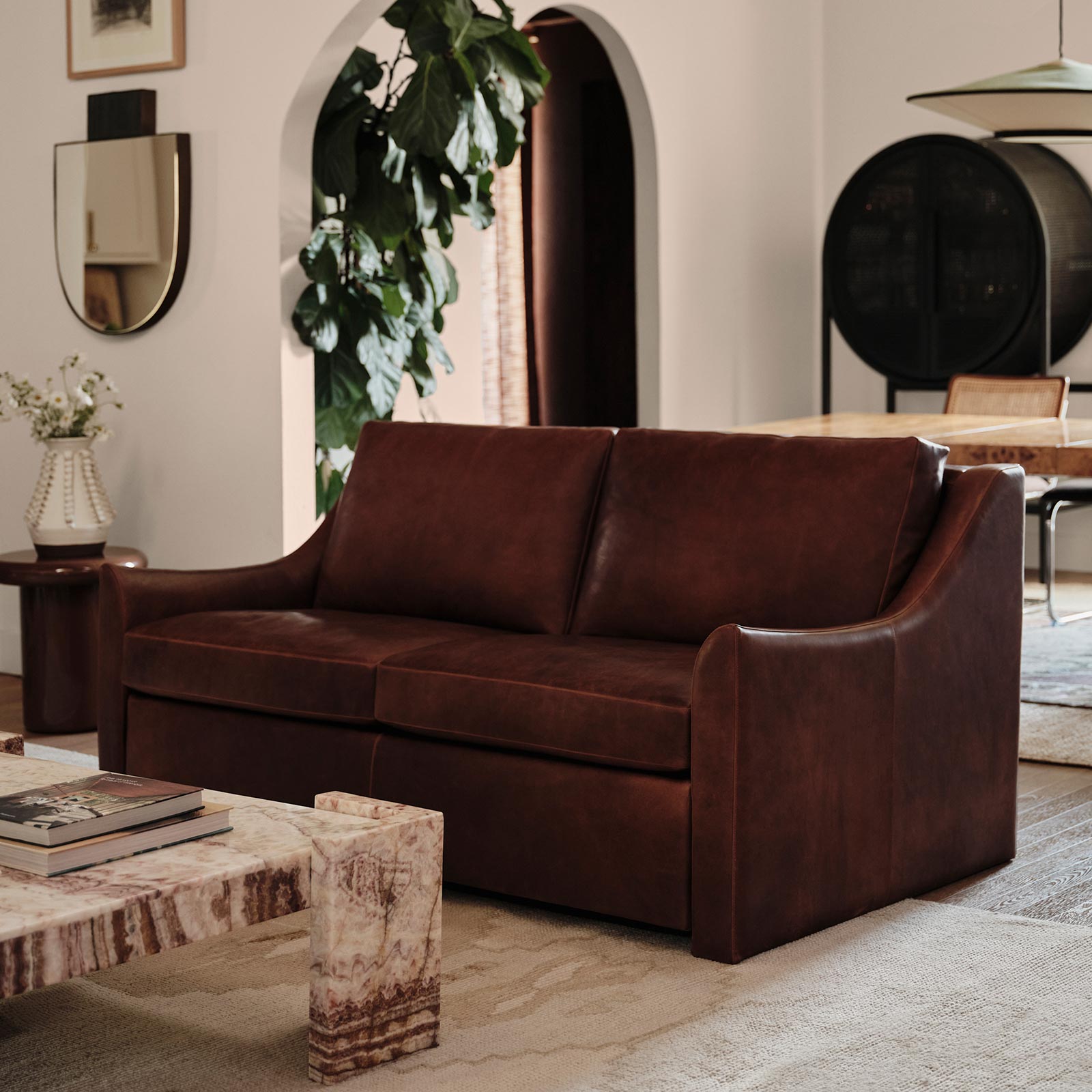 - Loose back and seat cushions
