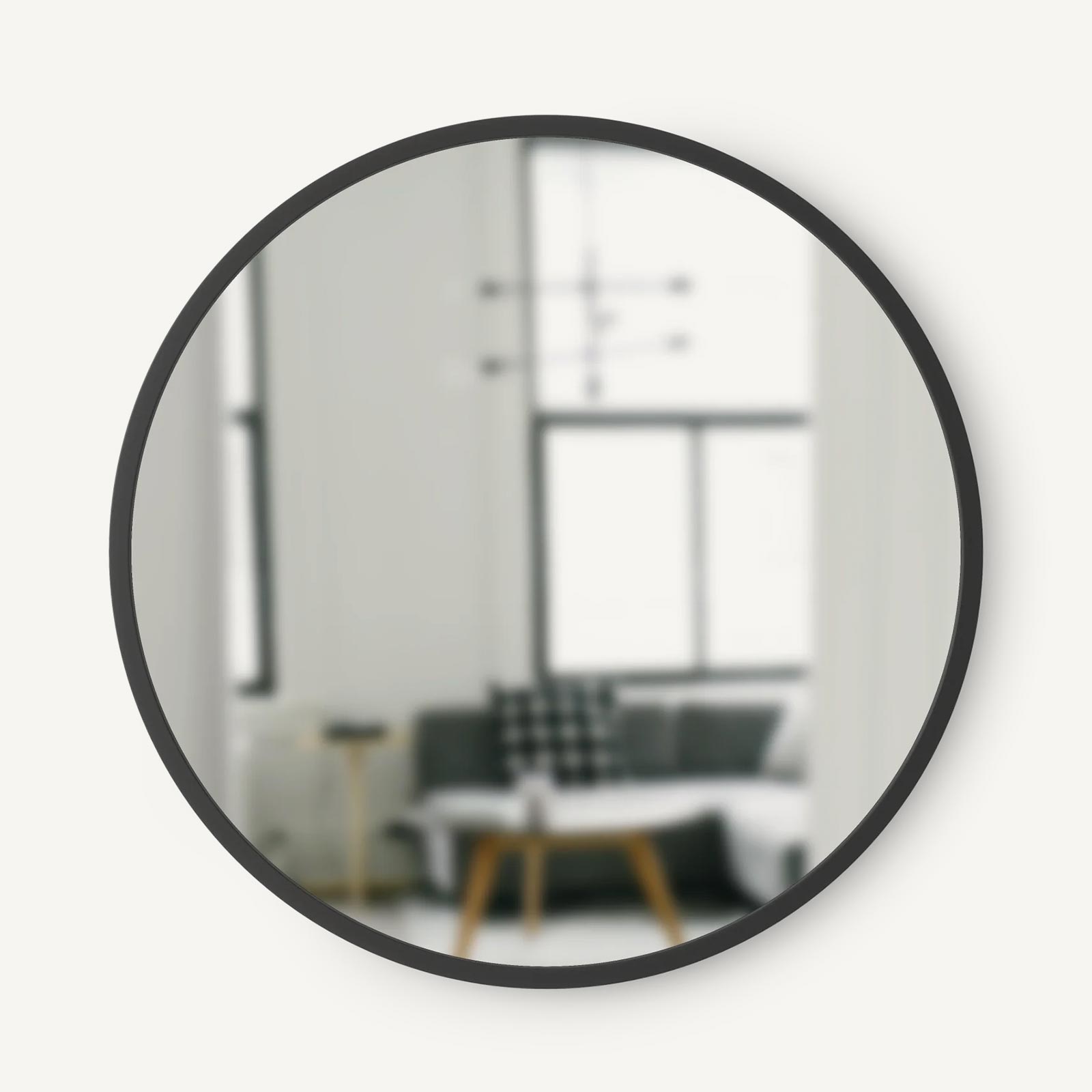 The Hub Wall Mirror’s innovative rubber frame makes it more durable than a typical wall mirror and gives it a modern, industrialized look. Available in several shapes and sizes, it fits with a variety of decor styles and brings an instant refreshing touch to any room. Note that rectangle and oval mirrors may be hung vertically or horizontally.
