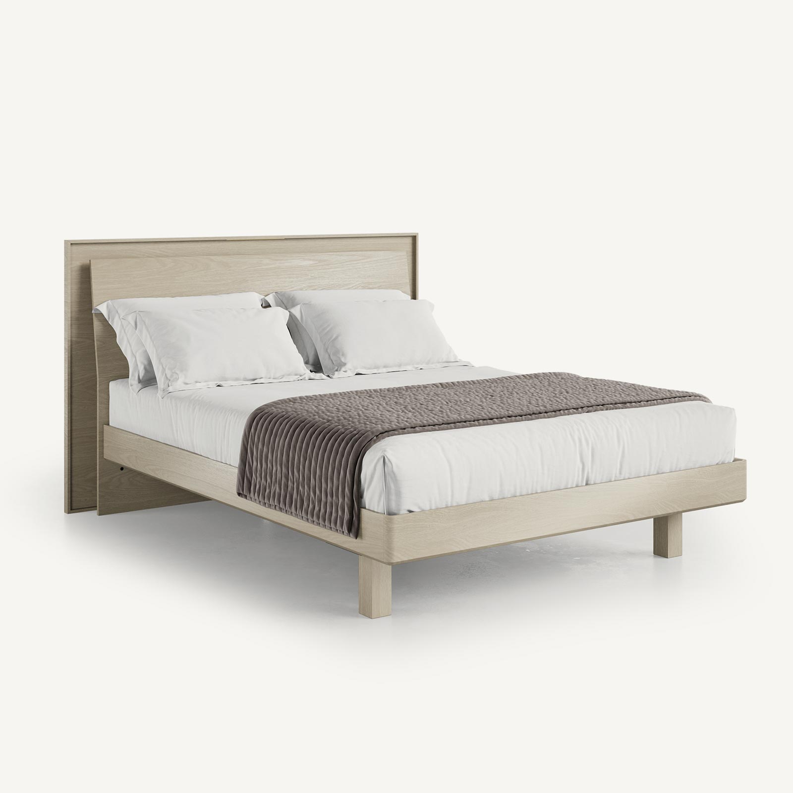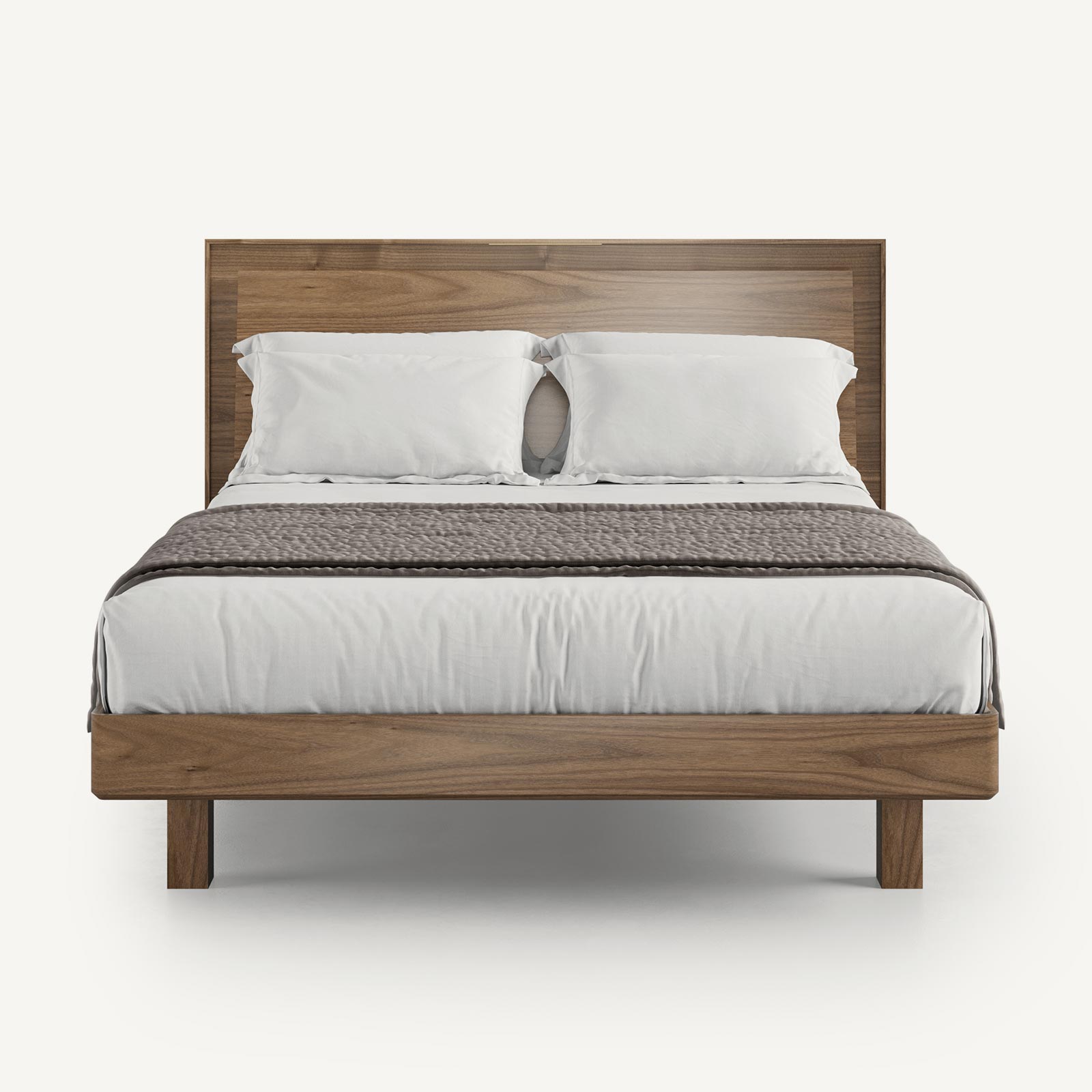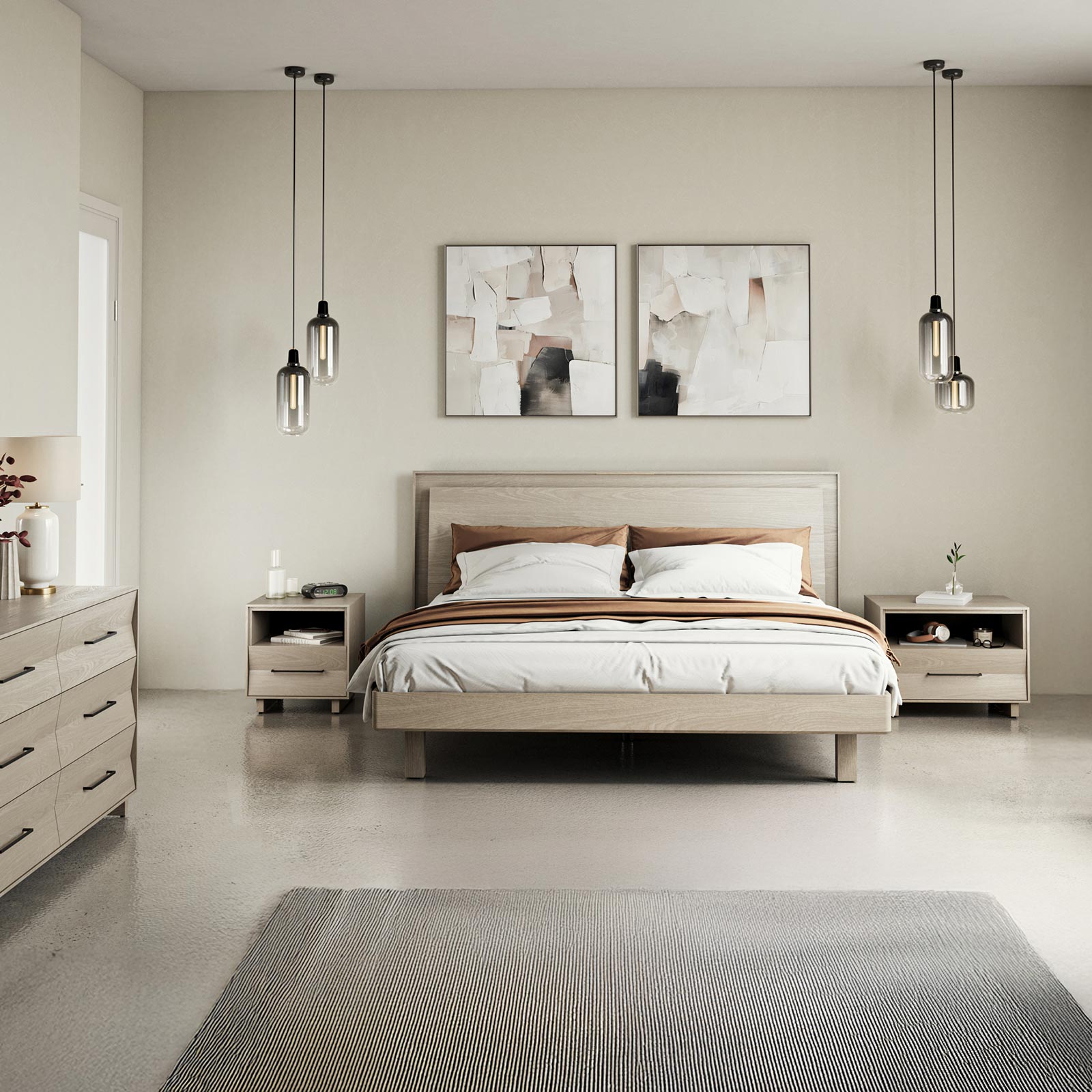The KAVA Bed balances geometric design with modern convenience, featuring built-in charging, dimmable headboard lighting, and an adjustable-height frame for a seamless blend of style and function.