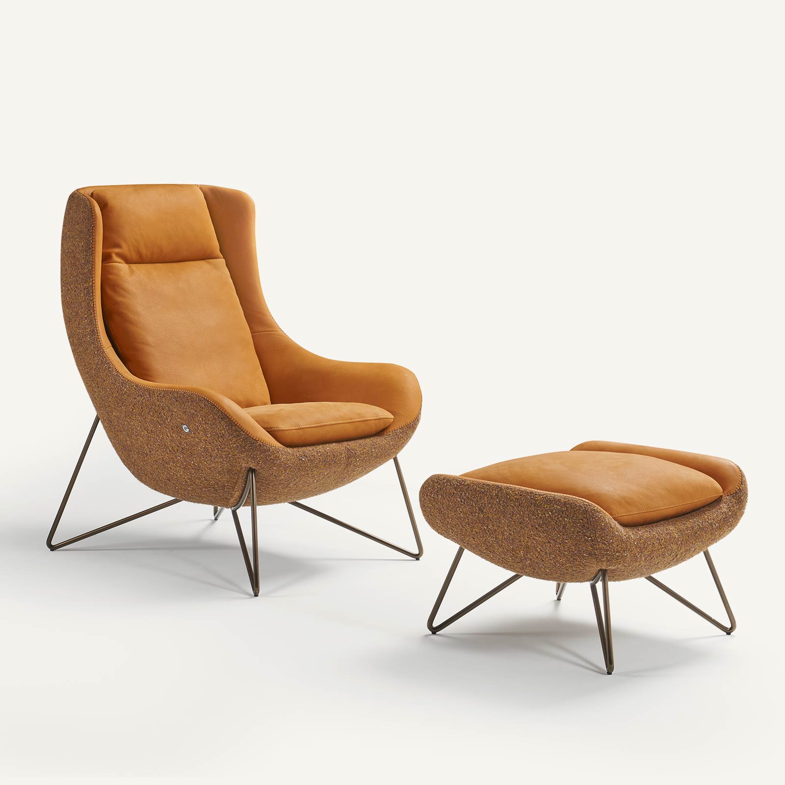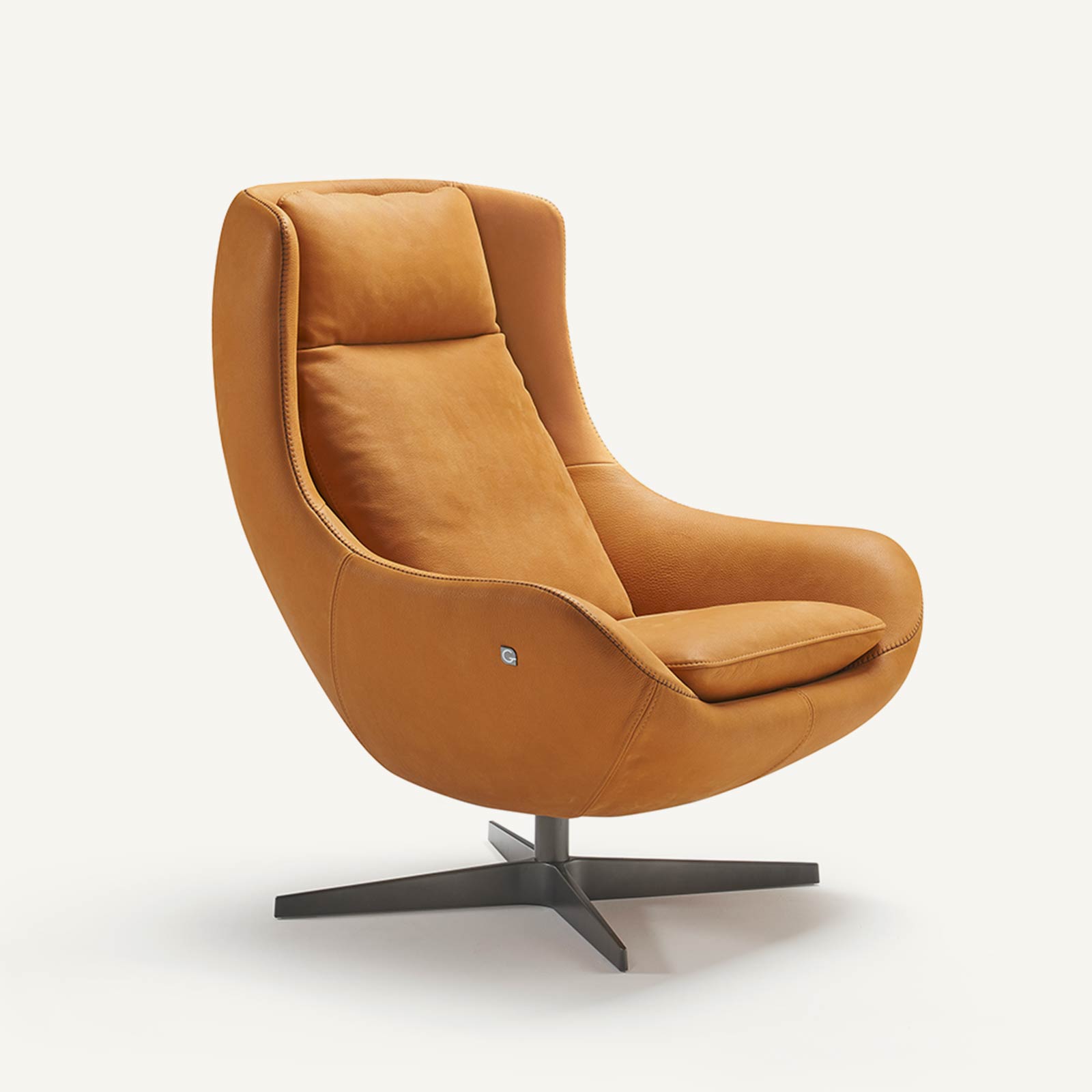 Madame is a high-back lounge chair with soft curves, luxurious upholstery, and ergonomic comfort — all crafted with Italian finesse. Choose between a wire base or a swivel base.
