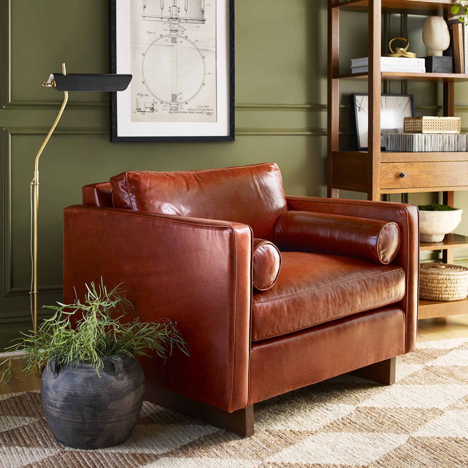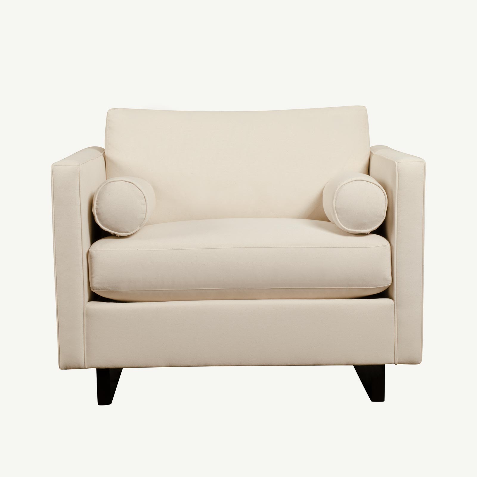 With its linear midcentury modern design and minimal adornment, the Paxton Chair is at home in any surroundings. A low-profile frame with narrow club arms houses plump seat and back cushions, with a pair of bolsters for a touch of style.