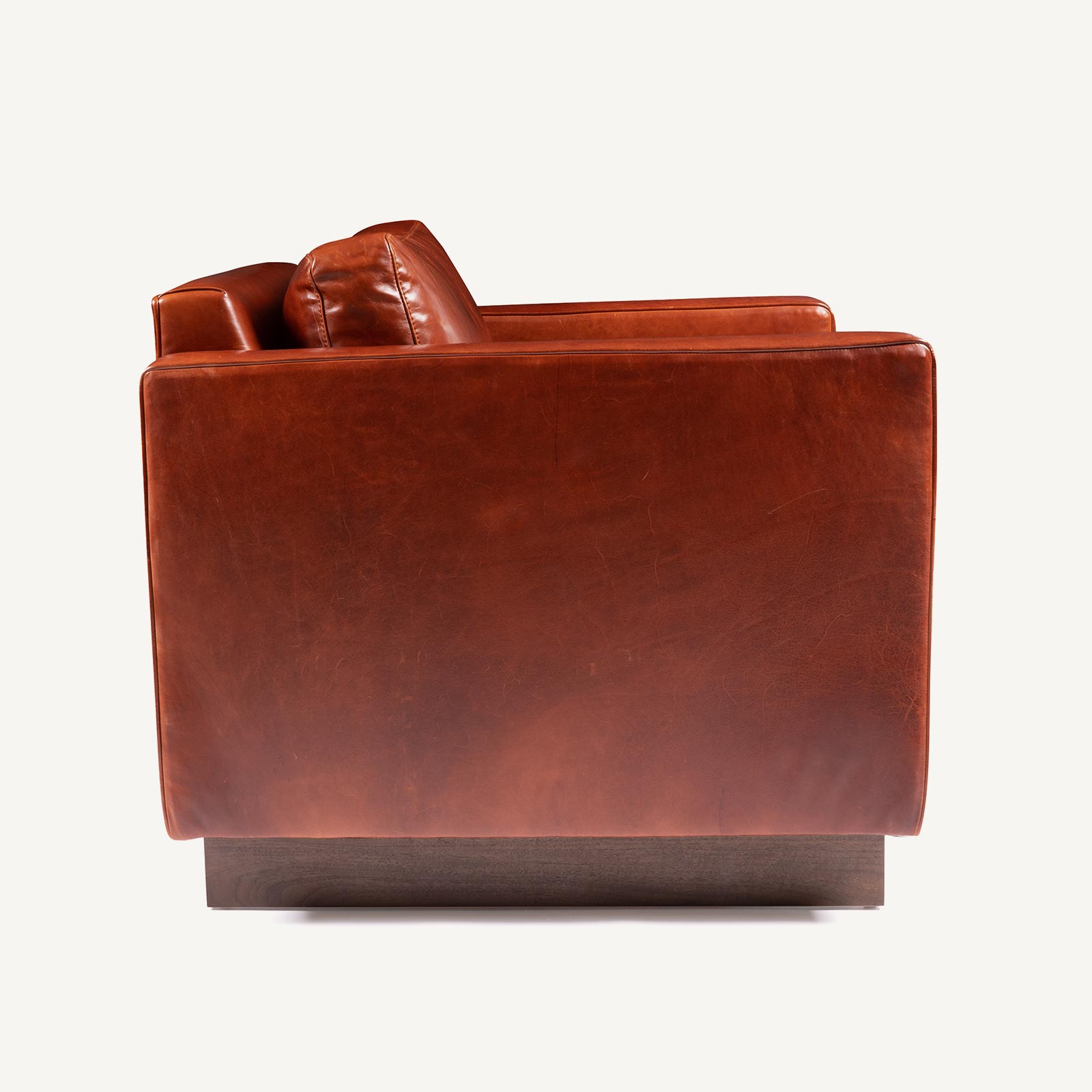 Available in a wide range of fabric and leather options with a solid American black walnut base.