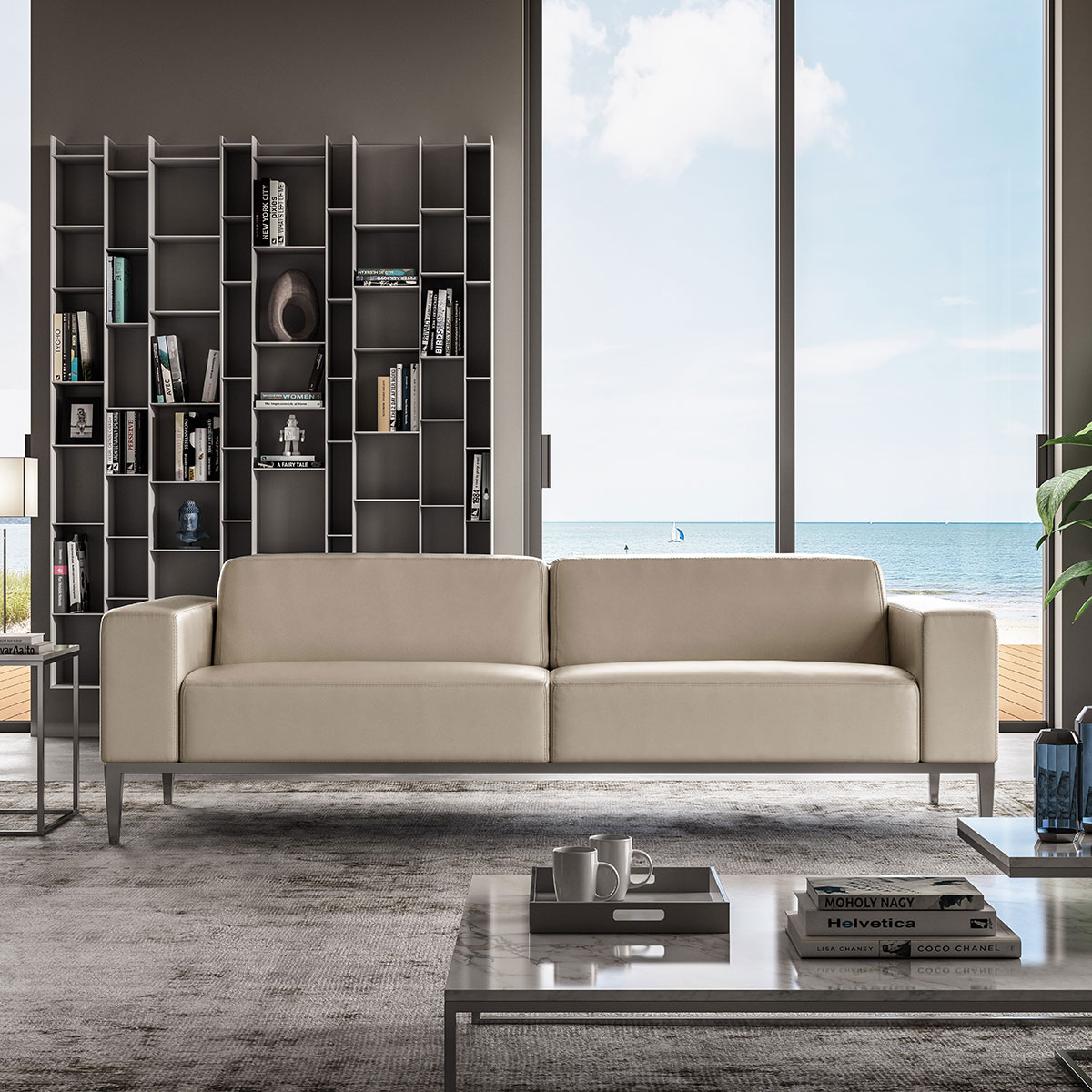 Available in more than 500 shades of leather, fabric and Ultrasuede®. Available with a metal base in brushed stainless or gloss black or with a wood base in Natural Walnut or Gray Ash.