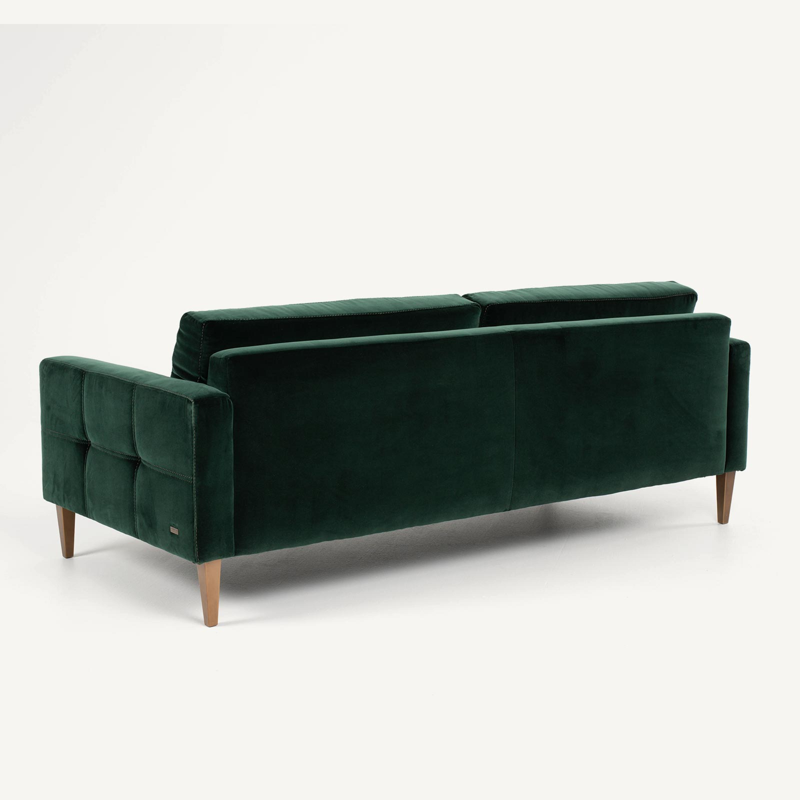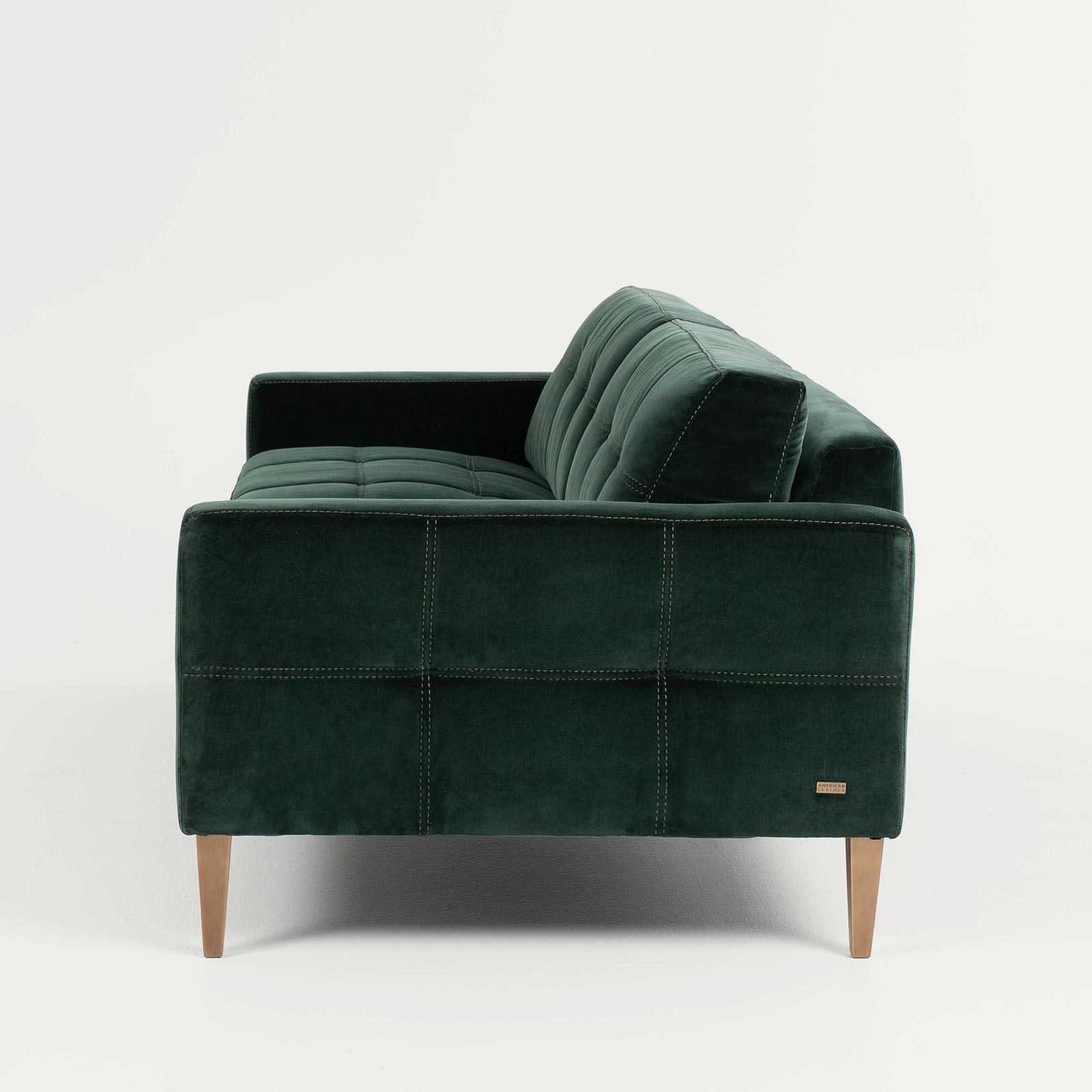 Available in more than 500 shades of leather, fabric and Ultrasuede®. Wood legs available in Acorn, Espresso or Walnut; metal legs are available in Antique Brass, Burnished Bronze, or Polished Nickel. Contrast stitching available in Black, Brown, Charcoal, Cream, Espresso, Grey, Lemon, Pink, Royal, Scarlet, Tangerine, or Teal.