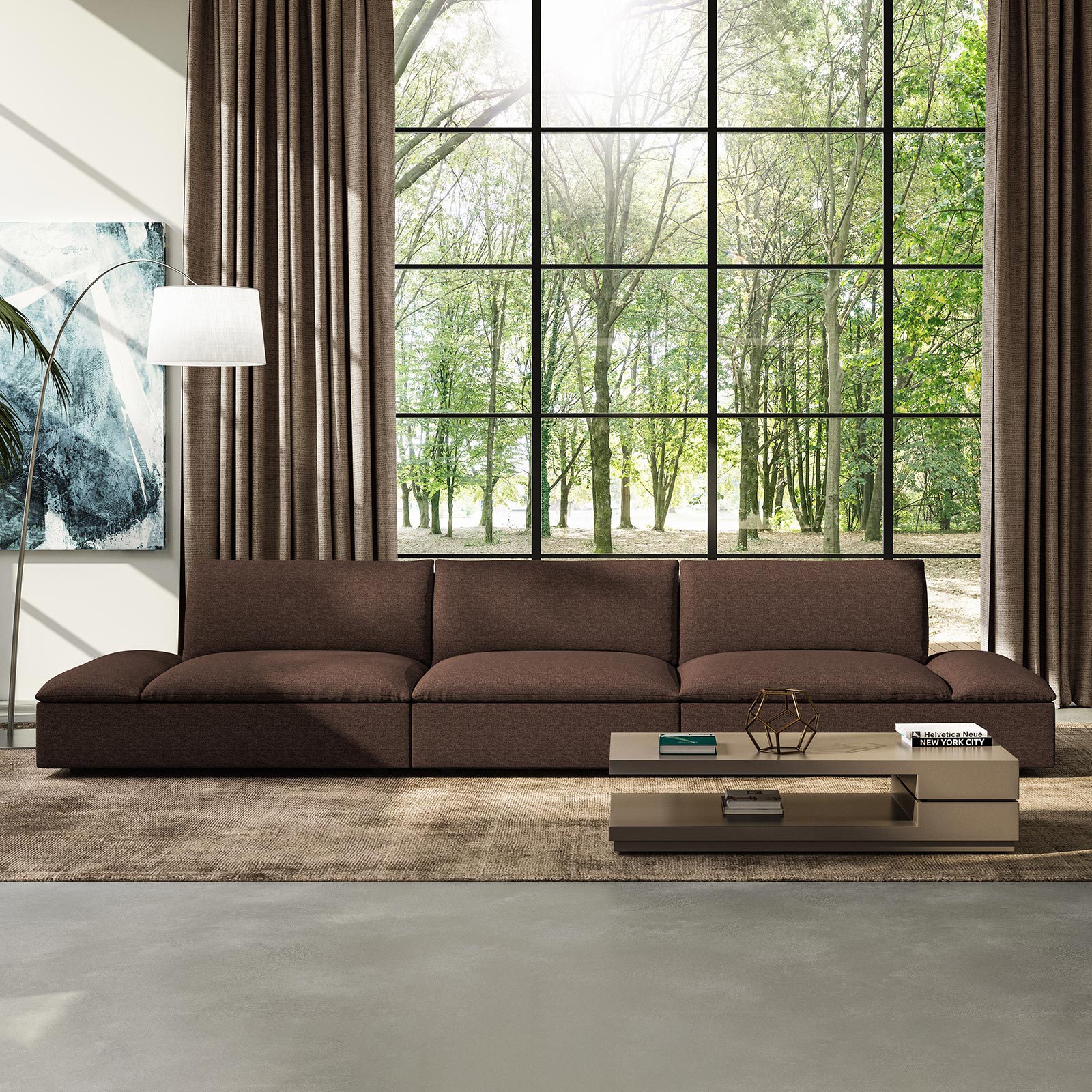 Three-Seat Sofa: 135”W x 45”D x 32”H