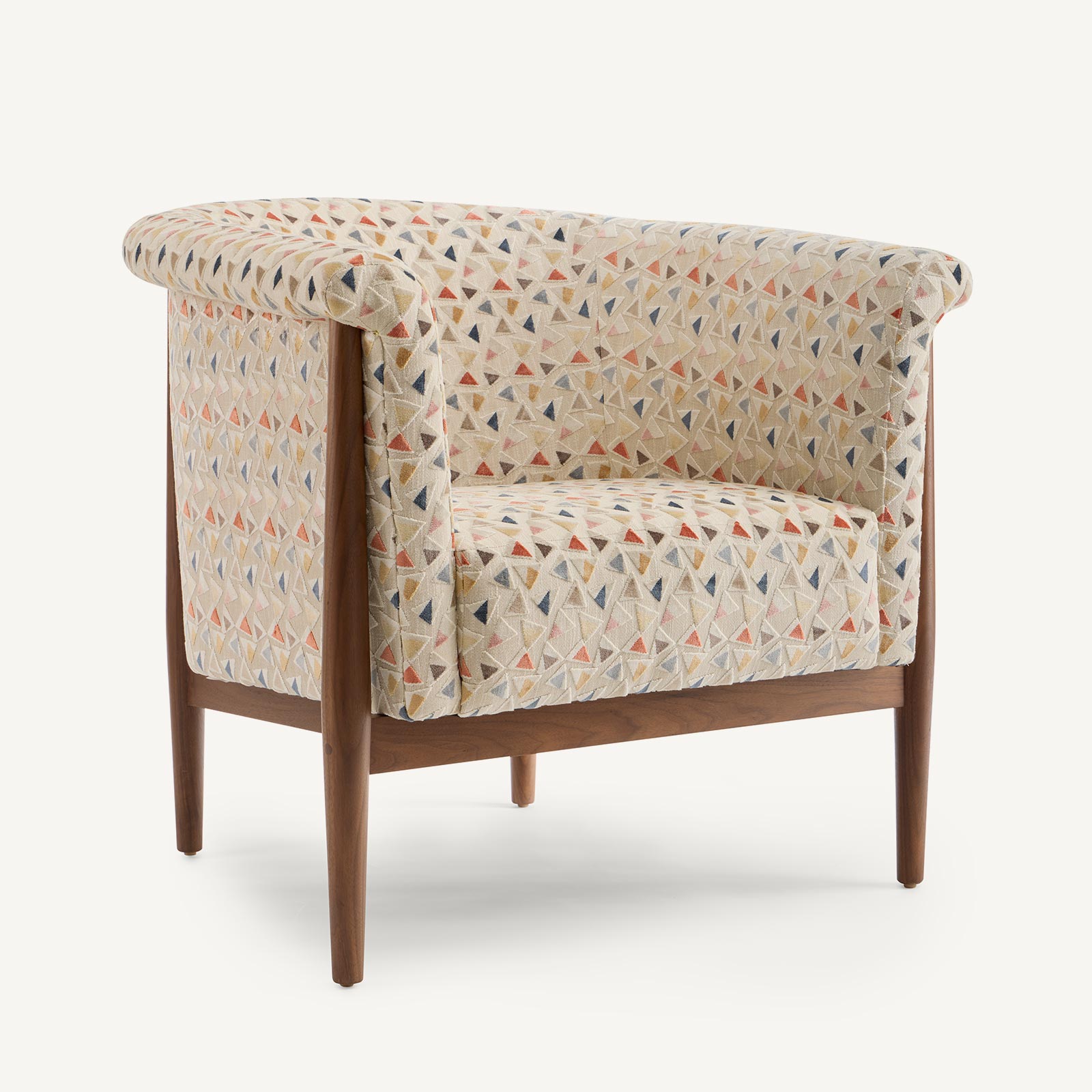 Create a feeling of comfortable elegance with the Walnut Grove Chair’s inviting midcentury modern shape. Gently rolling arms flow into a tight back that is tailored for extra comfort. Shaped front legs and an exposed front rail create a visual contrast between solid wood and soft upholstery.